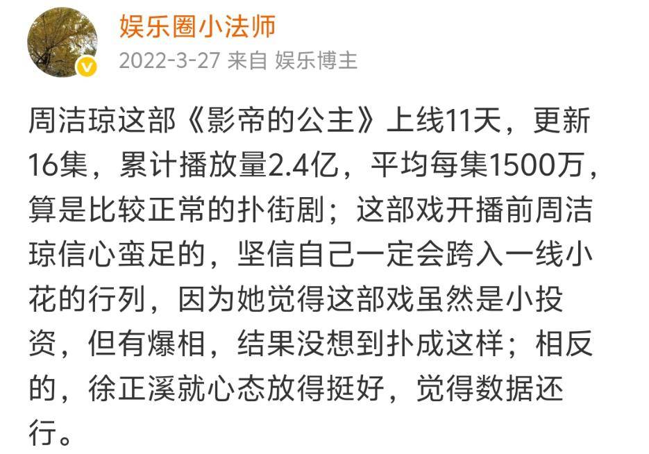 但她的作品运还是不行,接连几部剧热度都不高,证明了她并没有什么影视号召力。
